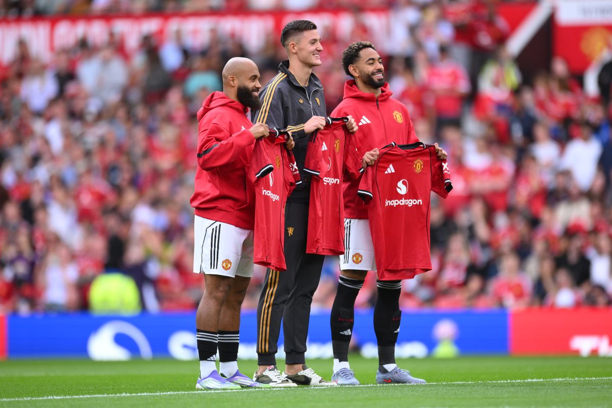 Benjamin Sesko (C) telah tiba di Old Trafford di antara rakit penandatanganan menyerang (Kredit Gambar: Getty Images)