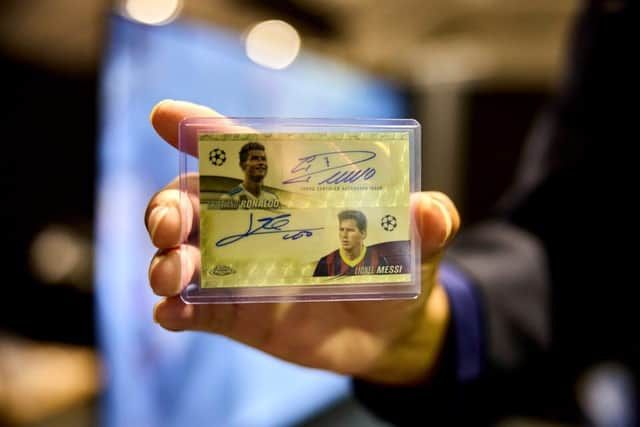 Kartu Superfractor Messi-Ronaldo Dual Auto 1/1 dibeli seharga £23 dan sekarang bernilai £100.000 (Kredit gambar: Topps)