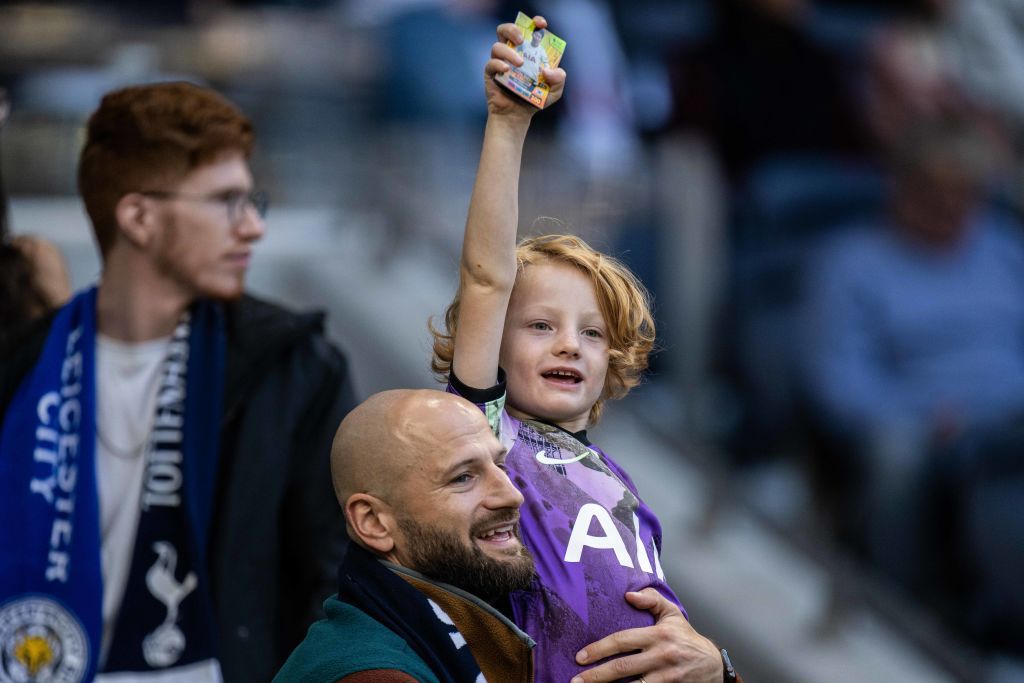 Seorang penggemar muda memegang kartu kolektor loteng selama pertandingan di Stadion Tottenham Hotspur (Kredit gambar: Getty Images)
