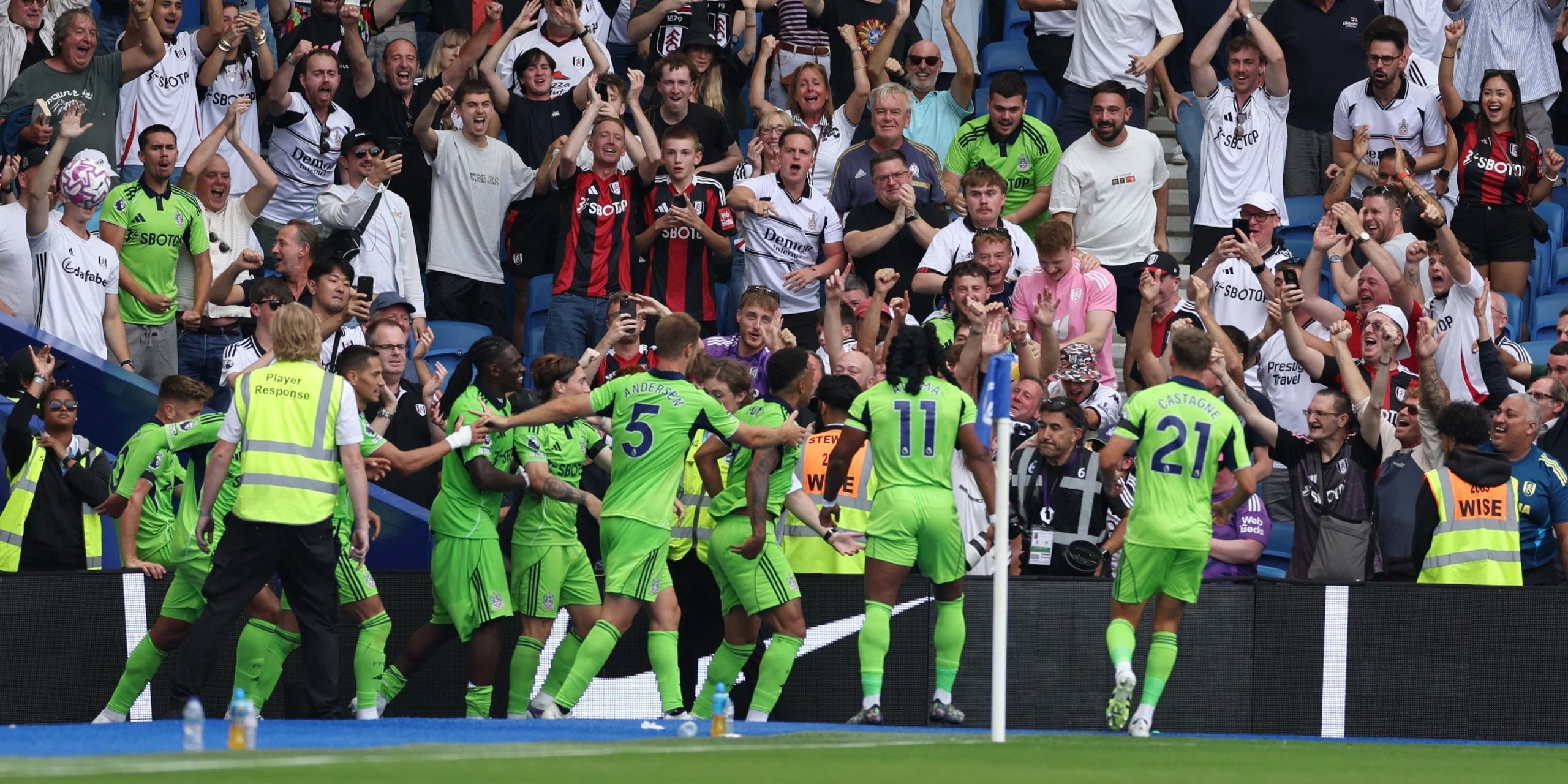 Fulham’s Rodrigo Muniz bereaksi setelah pertandingan