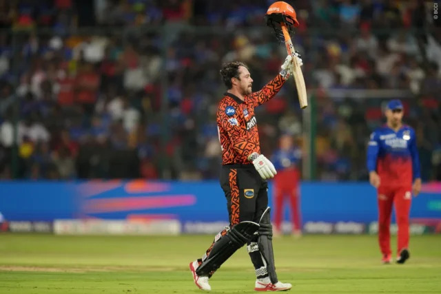 Sunrisers Hyderabad mengalahkan Royal Challengers Bengaluru dengan 25 run dalam festival lari epik di Bengaluru. Laju buruk berlanjut bagi tuan rumah karena bahkan blitzkrieg 35-bola 83 Dinesh Karthik tidak cukup untuk merombak target 288 run yang diposting di belakang pembantaian Travis Head dan Heinrich Klaasen.
