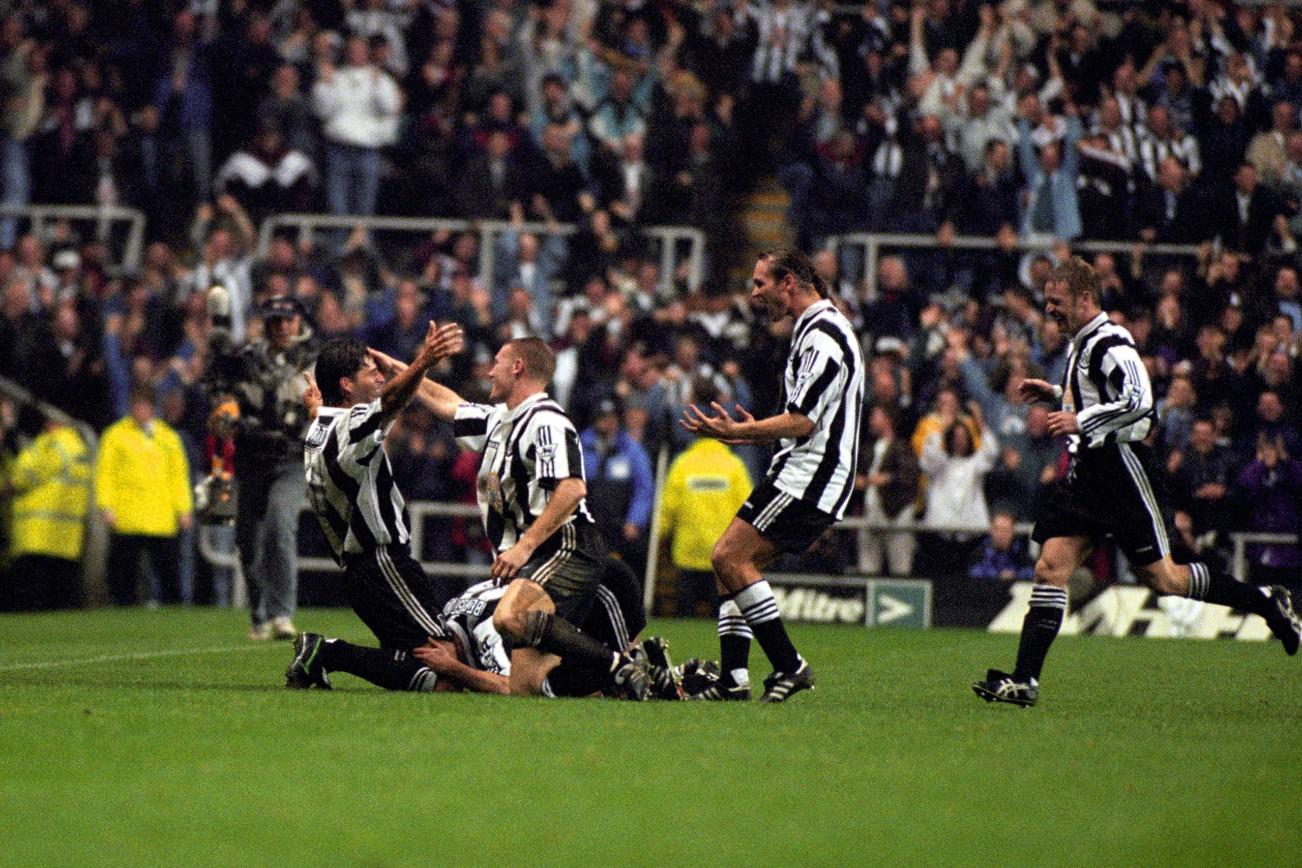 Philippe Albert terjatuh di lapangan St James’ Park untuk merayakannya.