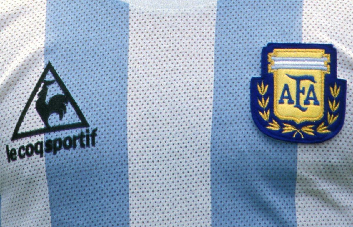 Tampilan dekat kaos kandang Le Coq Sportif Argentina pada Piala Dunia 1986 (Kredit gambar: Alamy)