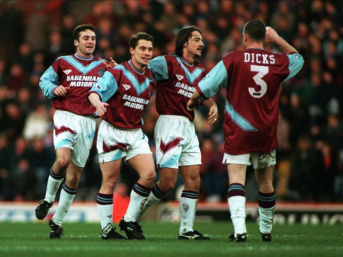 Pemain West Ham merayakan gol, Januari 1995 (Kredit gambar: Alamy)