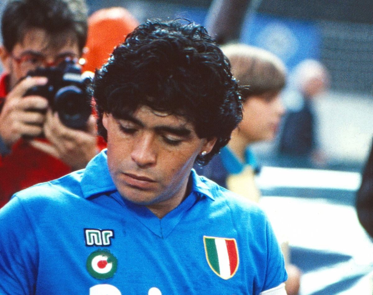 Diego Maradona dalam seragam Ennerre Napoli, 1988 (Kredit gambar: Alamy)